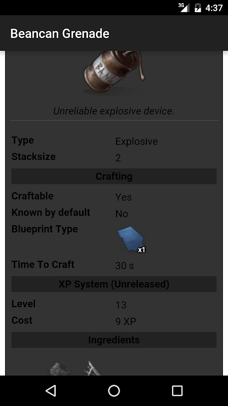Rust guide is an hyper simple to use application allowing every user to explore items that you need, you get and you find inside the game grouped by categories.