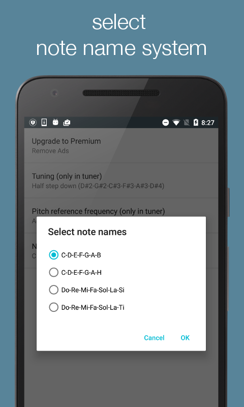 Various note naming schemes: English (CDEFGAB), German (CDEFGAH), Latin (DoReMiFa...)