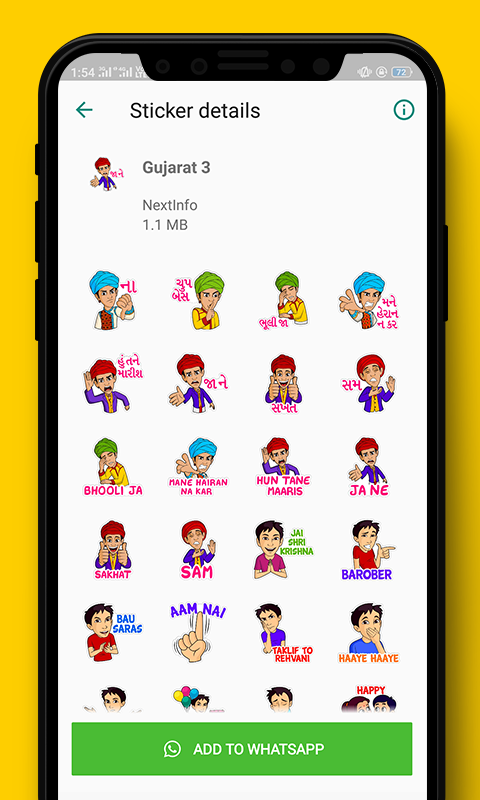 Make your chat experience even more better with gujarati Whatsapp Stickers, add your favorite stickers to Whatsapp and and share them with your friends and family with joy.