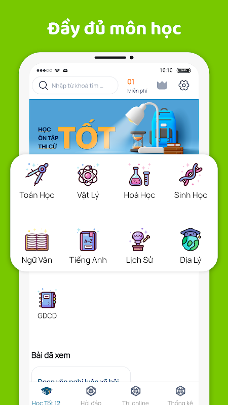 ・Theoretisches System, mathematische, physikalische und chemische Formeln, englische Grammatik, Verfassen von Aufsätzen, Lösungen oder Arbeitsbücher (loi Giai oder SBT), Lösungen oder Lehrbücher (loi Giai oder Lehrbücher)