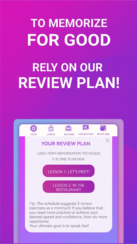 2. Der I Speak Koreanischkurs hat einen eingebauten Algorithmus zur verteilten Wiederholung, der es dem Schüler ermöglicht, das erlernte Material vom Kurzzeit- ins Langzeitgedächtnis zu übertragen.
