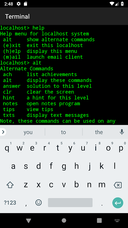 Stuck on a level? Just use the 'hint' or 'answer' commands to help you along.