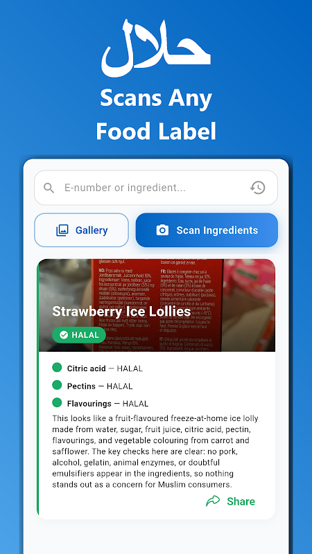 KI Halal Food-Scanner: Schwein, Alkohol, E-Nummern & Haram-Zutaten prüfen.