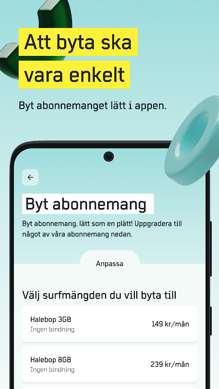 Mit unserer App haben Sie einen einfachen Überblick über Ihre Abonnements und können überprüfen, wie viel Surf Sie noch haben. Sie können zusätzliche Surf kaufen, wenn es anfängt und manchmal verstecken wir Ostereier. Natürlich erhalten Sie Zugang zu Rechnungen, Zahlungsdetails, PUK-Codes, Support usw. Um die App zu nutzen, loggen Sie sich am einfachsten mit der Mobile BankID ein, ansonsten können Sie über den Support einen persönlichen Code bestellen.