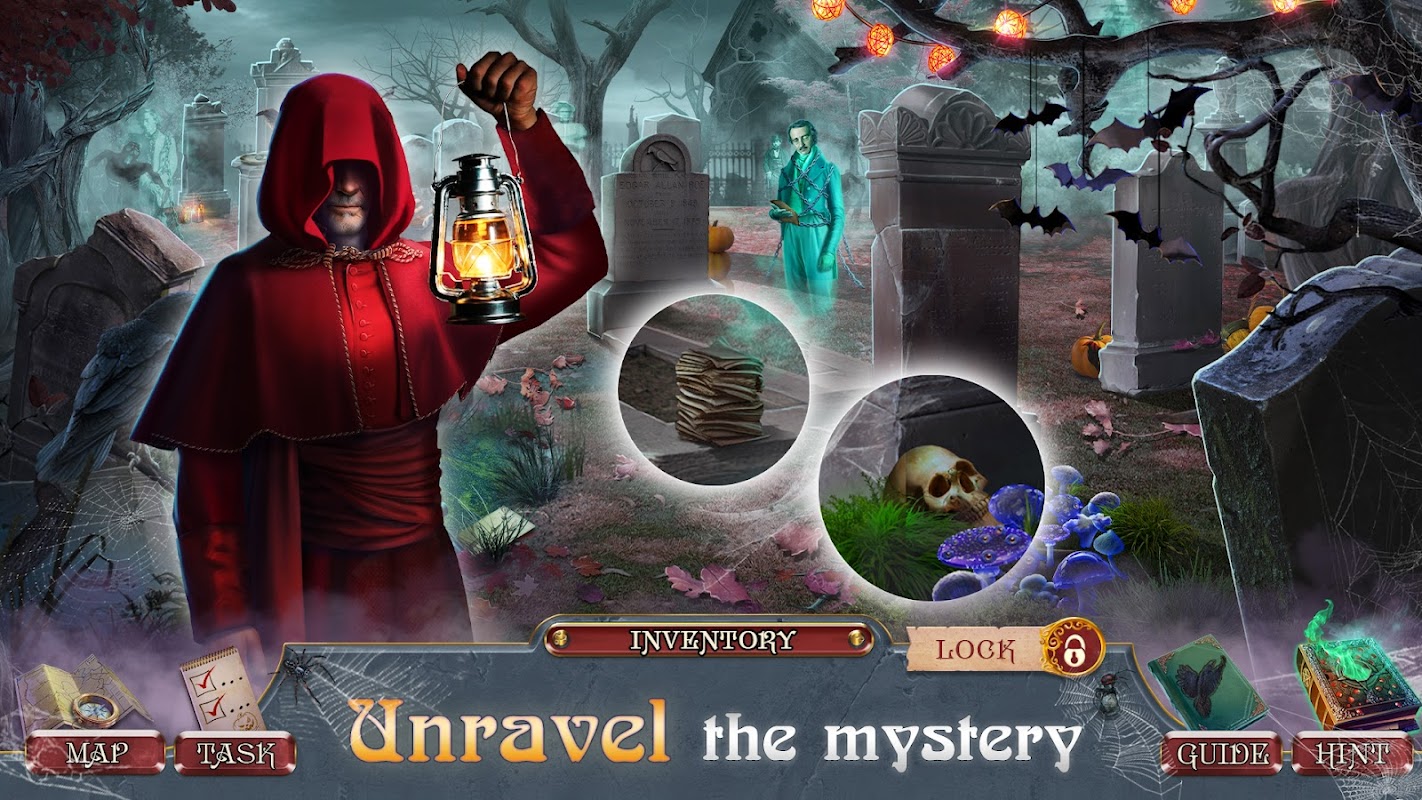 Finde fehlende Gegenstände, Artefakte und versteckte Objekte! Erlebe spannende Orte und löse Minispiele in diesem Mystery-Puzzle-Abenteuer! Nur du kannst dem berühmten Schriftsteller helfen, befreit zu werden! Löse alle Geheimnisse und schalte neue Hinweise frei, während du dich durch dieses Halloween-Abenteuer navigierst.