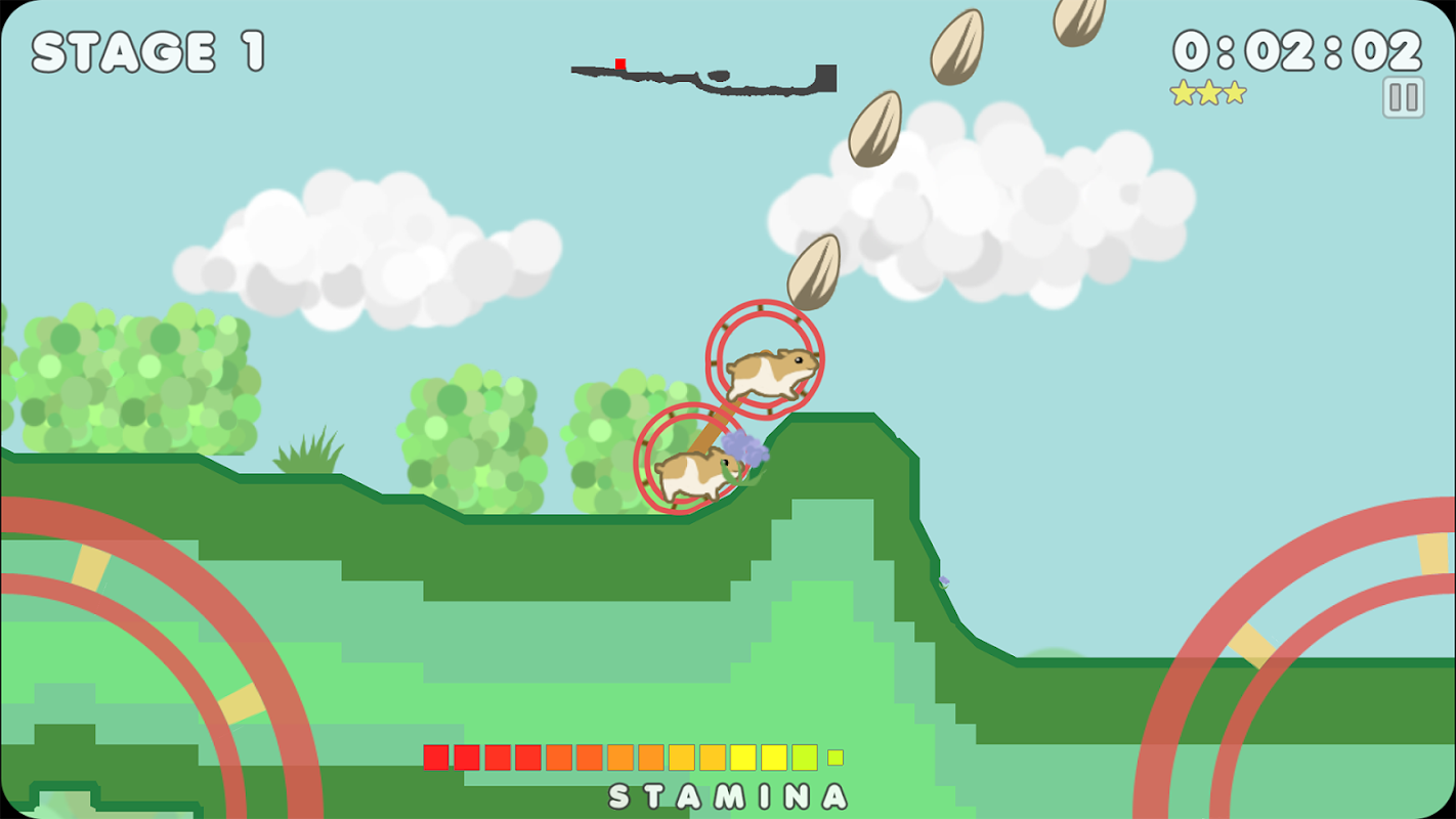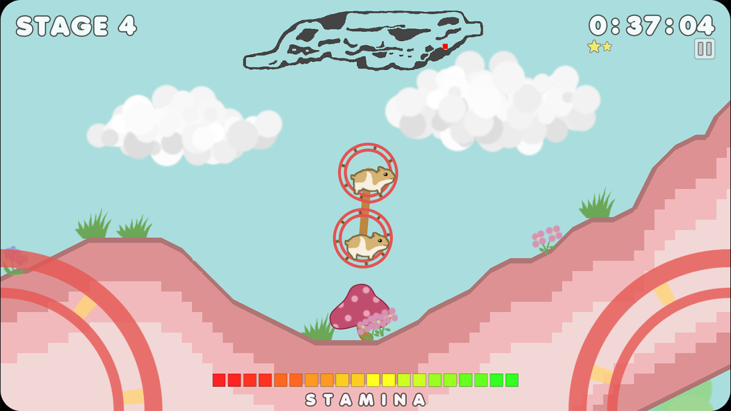 Hamster-Laufspiel. Lass zwei Hamster in ihrem Laufrad das Ziel erreichen.