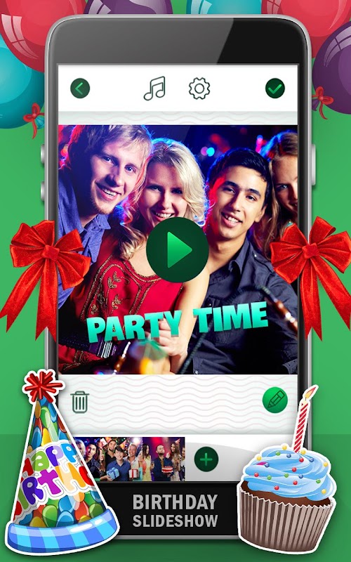 Verwenden Sie keine generischen Foto Diashow Gestalter, um eine glückliche "Geburtstags Diashow" mit Musik zu machen! Installieren Sie eine spezielle "Geburtstags Video" App und nutzen Sie alle Vorteile eines Geburtstags Diashow Erstellers! Ob Sie nach einem Kindergeburtstag Video Gestalter oder ein Video Einladung Gestalter für Geburtstagsfeier suchen, in Geburtstag Diashow Gestalter finden Sie die schönsten Foto Aufkleber, Bilderrahmen und Foto Filter für jeden Wunsch!