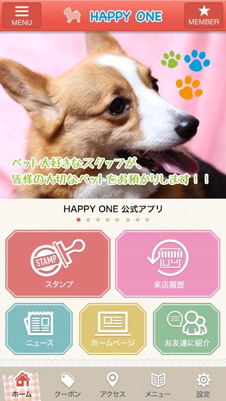 このアプリでは、HAPPY ONEの色々な情報やアプリユーザー限定のお得なサービスが手に入ります!