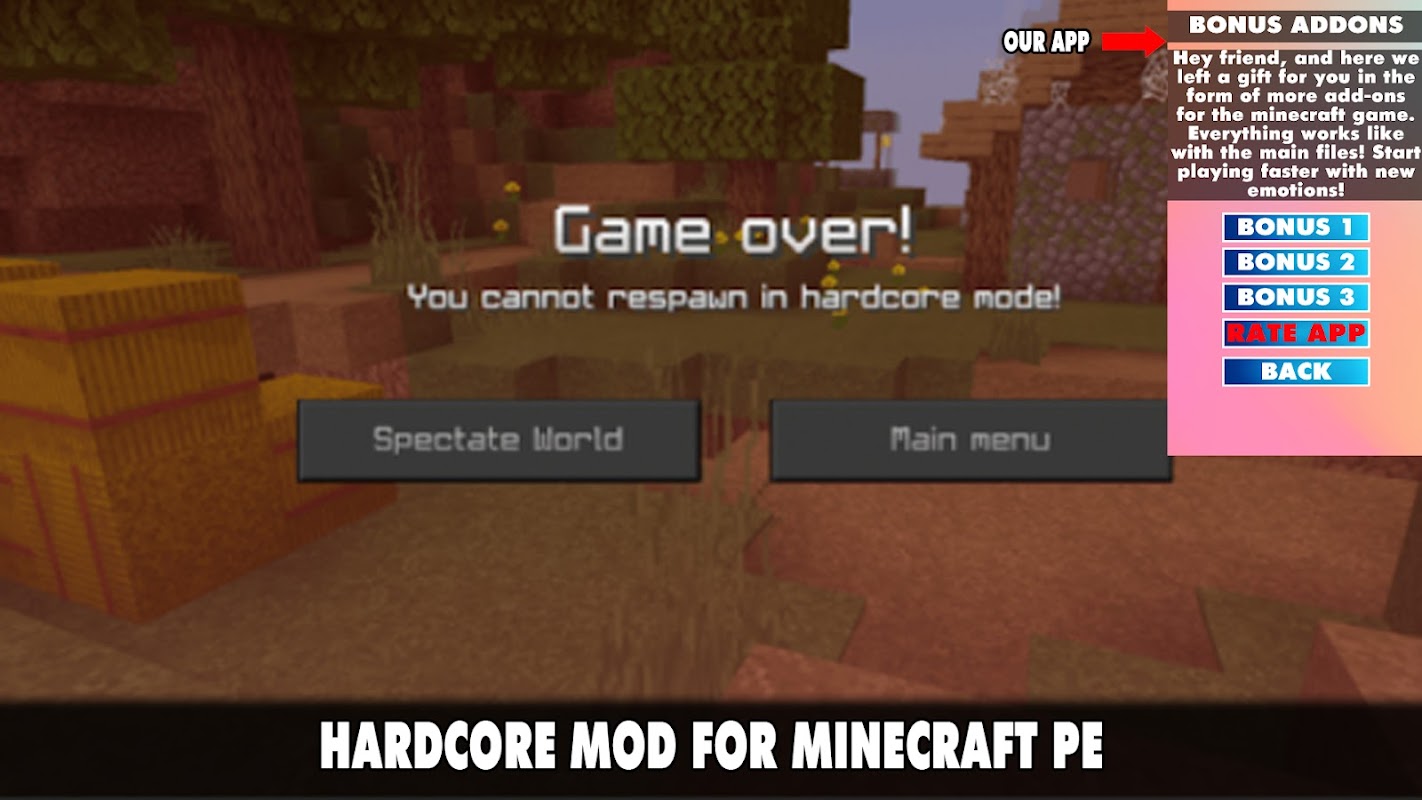 Hardcore Mod for Minecraft PE