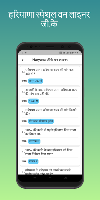 Entdecken Sie eine breite Palette von Themen rund um Haryana, wie historische Ereignisse, wichtige Persönlichkeiten, Regierungspläne, aktuelle Ereignisse, Touristenattraktionen und vieles mehr. Unsere App bietet detaillierte Erklärungen und relevante Informationen auf Hindi und macht sie für Benutzer aller Sprachniveaus zugänglich und leicht verständlich.