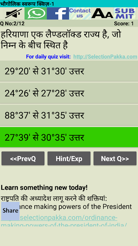 Diese App enthält Multiple-Choice-Fragen von allgemeinem Wissen über Haryana.