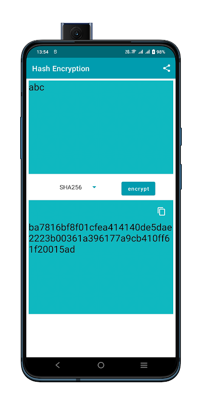 In dieser App wird Text durch Md5-, Sha1-, Sha256-, Sha384- und Sha512-Algorithmen gehasht