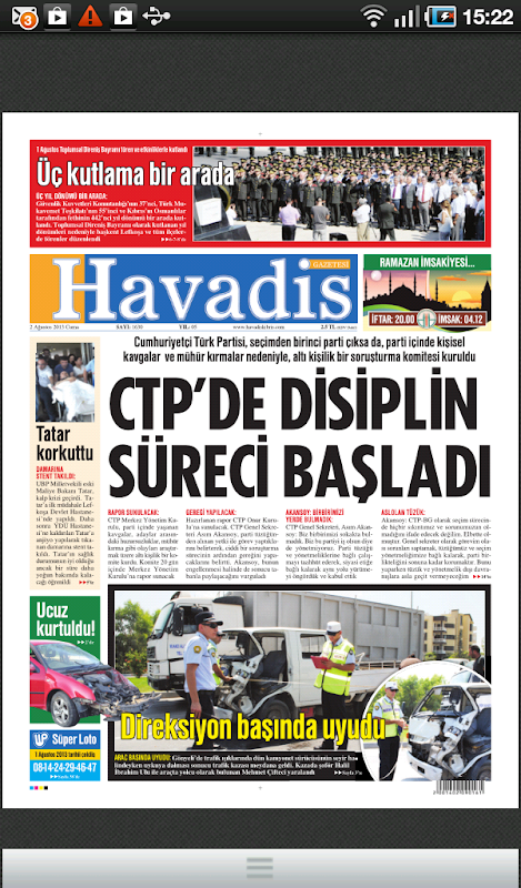This Android application is the official application of Kıbrıs Havadis Gazete. Content is in Turkish.