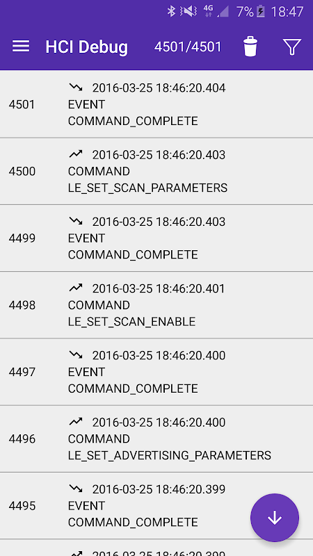 Decoder / Anzeige Bluetooth HCI Pakete Streaming von Snoop log