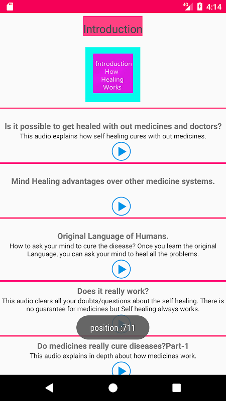 It is possible to heal any disease without medicines and doctors. All you need to do is to just listen to the audio, understand and imagine as instructed. The healing magic will automatically happen. There is no guaranteed for medicines but this imagination is guaranteed to cure even the tough diseases like cancer, AIDS etc