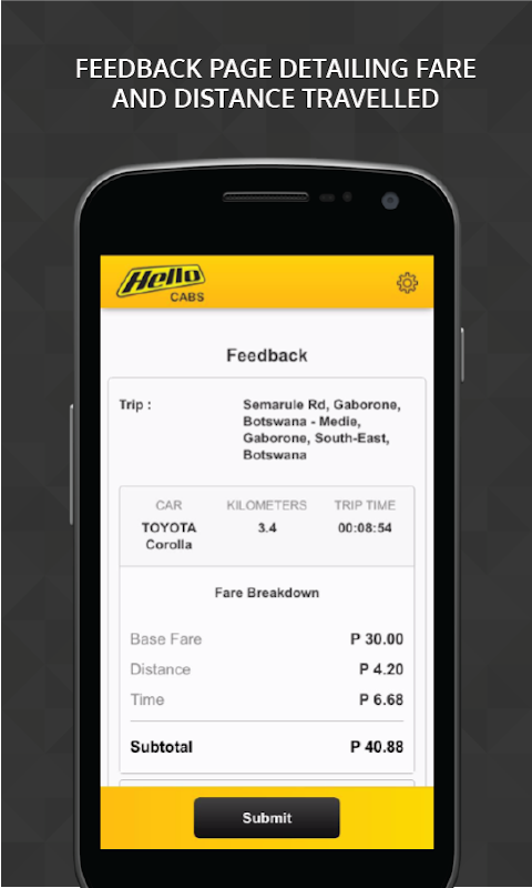 Invoicing details appear on both customer phone and driver phone as soon as driver ends trip so that a fair and transparent transaction can be settled. There are no security risks relating to transactions as settlement is in cash and Hello Cabs does not collect customer personal details except contact number