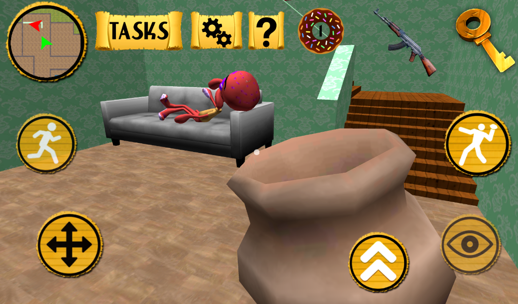 • Amazing Gameplay! Eat donuts to recover your stamina, run from the sponge’s neighbor, hide under beds from him!