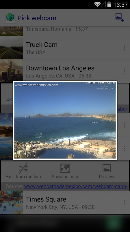 Die Bilder werden alle 30 Minuten von Live Webcams geholt, so dass Sie immer sehen, die aktuelle Ansicht der gewählten Position.