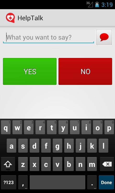 Für Anwender mit eingeschränkter Fingerfertigkeit, präsentiert HelpTalk zwei große Ja / Nein-Schaltflächen.