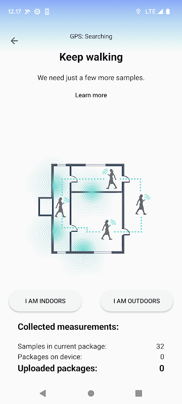 1. Datenerfassung in Innenräumen starten: Diese Option wird verwendet, wenn sich der Haupterfassungsbereich in einem Gebäude befindet. Die App leitet den Erfassungsprozess. Folgen Sie einfach den Anweisungen auf dem Bildschirm.