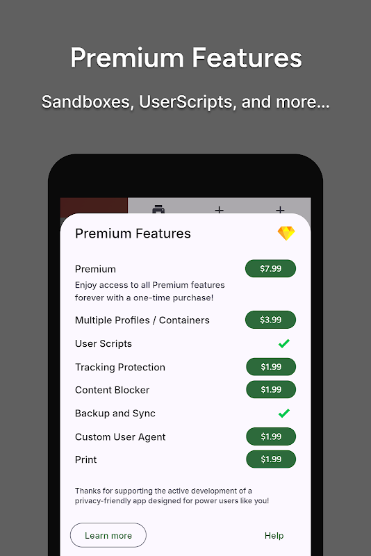 Vielen Dank, dass Sie die aktive Entwicklung einer datenschutzfreundlichen App für Power-User wie Sie unterstützen!