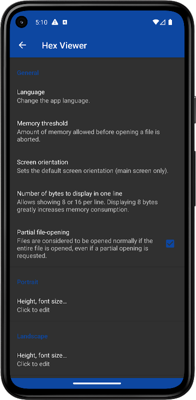 • Diese App ist das ultimative Tool zum Öffnen und Bearbeiten beliebiger Dateien auf Ihrem Android-Gerät. Egal, ob Sie die Datei im Hexadezimal- oder Nur-Text-Modus anzeigen, den Inhalt im Hexadezimalmodus ändern oder die Datei auf Ihrem Gerät speichern möchten, diese App kann alles. Mit der praktischen Suchoption können Sie auch nach beliebigem Text oder Hex-Code in der Datei suchen. Lassen Sie nicht zu, dass inkompatible Apps Sie daran hindern, Dateien zu öffnen und zu bearbeiten. Holen Sie sich jetzt diese App und entfesseln Sie die Leistung Ihres Android-Geräts!
