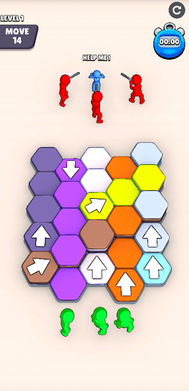 Sortieren Sie Sechsecke, bekämpfen Sie Feinde, retten Sie Geiseln.