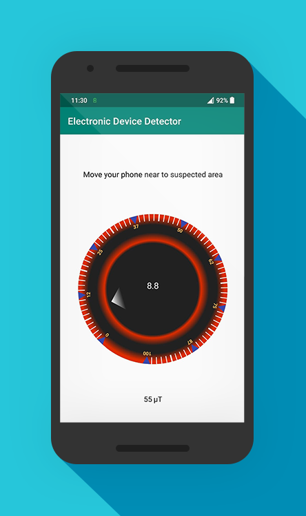 Wenn Sie ein Haus oder ein Geschäft mieten, könnte der Vorbesitzer einige versteckte Kameras darin gelassen haben, die Sie mit dem Detektor für versteckte Kameras leicht finden können. Es ermöglicht Ihnen, versteckte Kameras zu erkennen und Magnete mit dem in Ihrem Android-Gerät vorhandenen Magnetometersensor des Mobiltelefons zu erkennen. Sie müssen das Telefon mit Blick auf Ihren Sensor in Richtung des verdächtigen Bereichs in Ihrer Nähe bewegen. Um die Position des Magnetometersensors Ihres Geräts zu ermitteln, können Sie die Ober- und Unterseite Ihres Geräts bewegen, um dies zu überprüfen. Auf diese Weise können Sie die Sensorposition Ihres Telefons leicht finden und versteckte Kameras leicht erkennen.