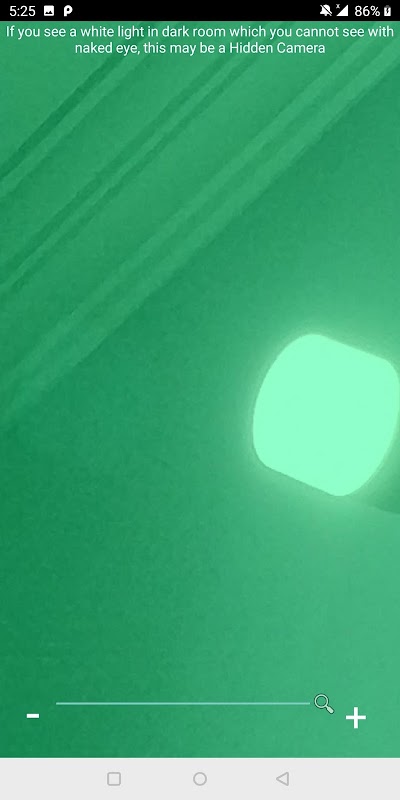 Wenn Sie diese App verwenden, schalten Sie einfach das Licht aus und suchen Sie nach weißem Licht, das Sie ohne die App nicht sehen können. Dies kann eine Kamera sein. Danach können Sie manuell nach dem Ort suchen, an dem Sie weißes Licht gesehen haben.