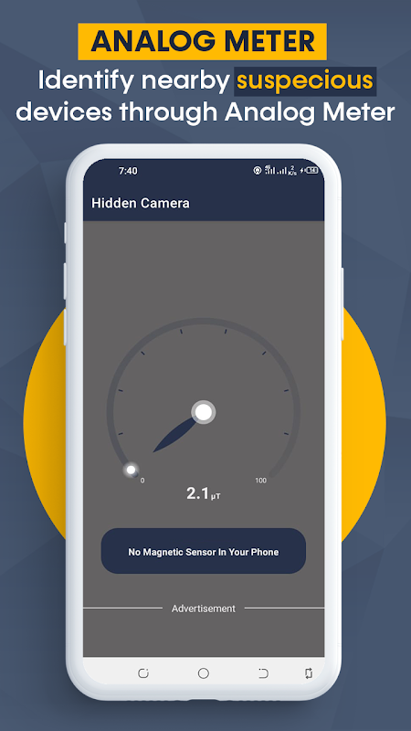Hidden Camera Detector works best on the latest phones that detect cameras, suspicious devices, metals and ferromagnetic materials around you. If you are in doubt, worried and sensitive about spyware and suspicious hidden devices around you, you are easy to detect all of them with just one click. One-Click Hidden Camera detection allows you to use all features like detecting cameras using Graph Indicator, Digital Meter, Object Detector and other advanced features added to this application.