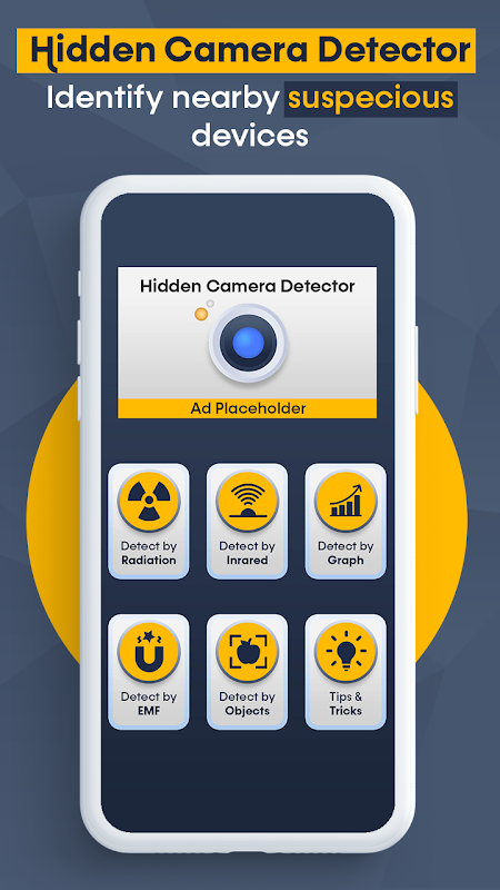 Hidden Secret Camera Detector protects your personal life from secret and tiny cameras installed nearby you which keep monitoring you. Hidden Camera Detector is Anti-Spy hidden camera detector that allows you to detect spy cameras, hidden cameras, tiny cameras, secret cameras, and CCTV cameras around you. If you feel insecure or feel that someone is monitoring you, you can protect yourself with Hidden Camera Detector. It provides you with unique and easy features to search out hidden and secret cameras installed near you.