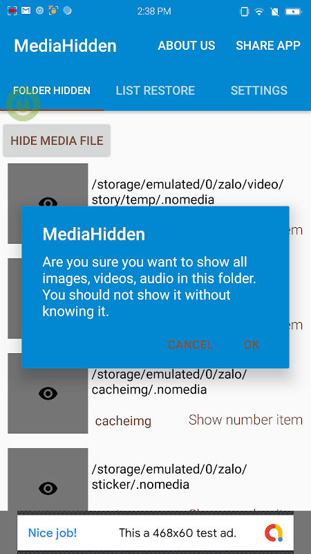 MediaHidden ist die Anwendungshilfe, die alle auf dem Gerät versteckten Dateimedien anzeigt.