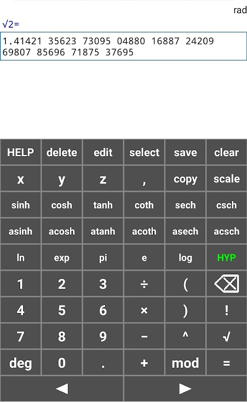 Diese App ist ein beliebiger genauigkeit. Sie können eine große Anzahl, Fakultäten, Quadrat berechnen