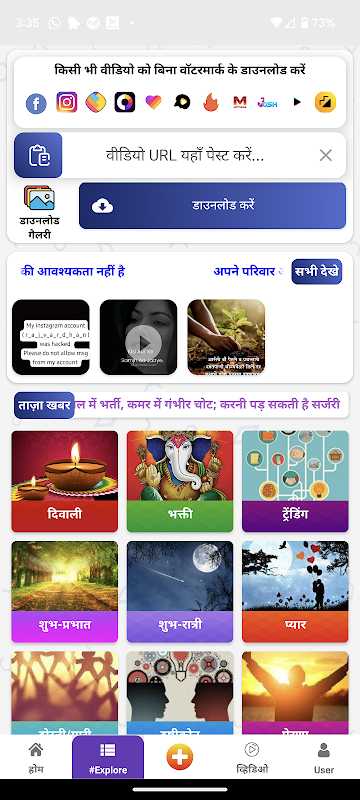 - 🔄 Integrieren Sie den Status-Saver und den Video-Downloader nahtlos in die Hindi-Status-App.