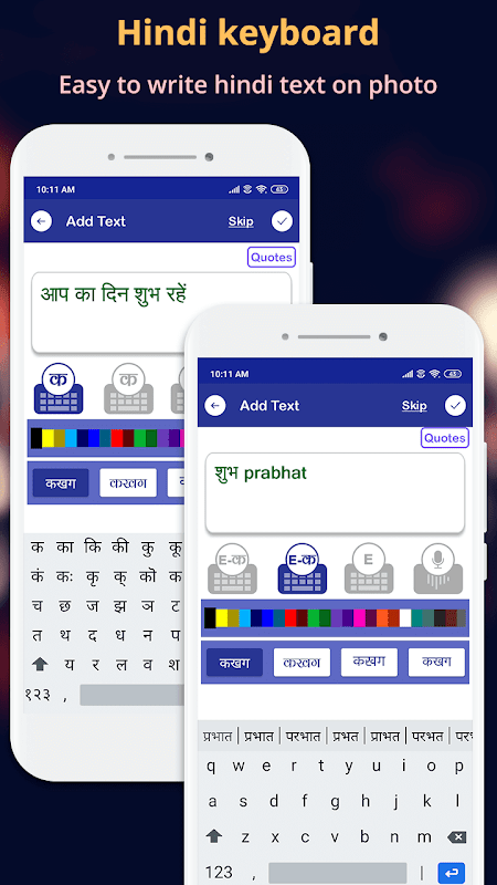 Schreiben Sie Ihre Gefühle in Ihrer Lieblings-Hindi-Sprache auf Ihre Fotos oder Hintergründe und teilen Sie Ihr Foto mit Hindi-Text über soziale Medien mit Ihren Freunden und Ihrer Familie.