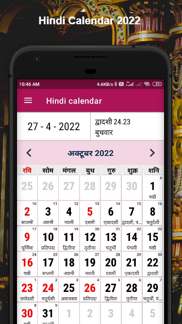 Hindu calendar 2022 app that allows you to view Indian government holidays for 2022, Hindi Sanatan calendar 2022 and also Hindi panchanga information 2022.