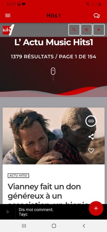 Es ist 100% kostenlos und hat folgende Funktionen: Hören Sie Hits 1-Radiosender überall und unbegrenzt, senden Sie Ihre Widmungen und Soundwünsche, nehmen Sie an Spielen teil, konsultieren Sie die Teamdateien, sehen Sie die Nachrichten des Radios sowie Live-Musik und Leute Nachrichten, surfen Sie auf Facebook, Twitter und Instagram des Radios, konsultieren Sie die Website des Radios, posten Sie Kommentare...