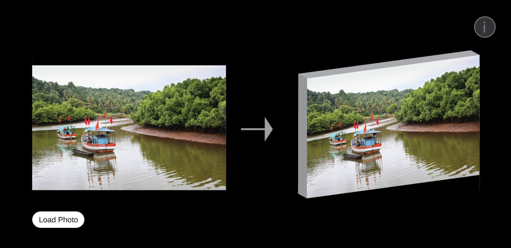 Die Holofil-Photo-App ermöglicht genau das. Laden Sie Ihr reguläres 2D-Foto im JPEG-/PNG-Format hoch und wählen Sie aus verschiedenen einfachen 3D-Leinwandrahmenstilen, wo das 2D-Foto montiert wird. Spielen Sie mit verschiedenen Einstellungen. Exportieren Sie ein 3D-Modell im Obj/Mtl-Format.