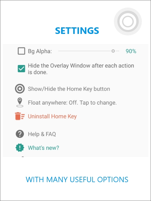 Home Key wurde für alle Android-Betriebssysteme ab API 14+ entwickelt, um die Home-Back-Recent-Keys des Geräts ohne Werbung einfach zu ersetzen.