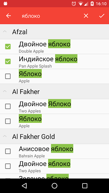 - Возможность добавлять кальянные табаки на полку из списка общемировых брендов: Al Fakher, Serbetli, Nakhla, Afzal, Starbuzz, Tangiers, Fumari, Doobacco.