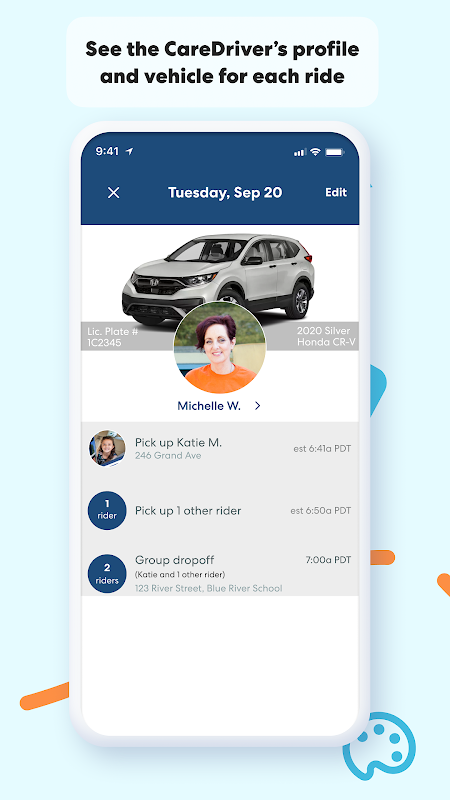 Sie erhalten vorab Informationen zum CareDriver Ihres Kindes: ein Foto, eine Biografie und Fahrzeugdaten. So wissen Sie genau, wer Ihr Kind mitnimmt, und können Ihr Kind auf die bevorstehende Fahrt vorbereiten.