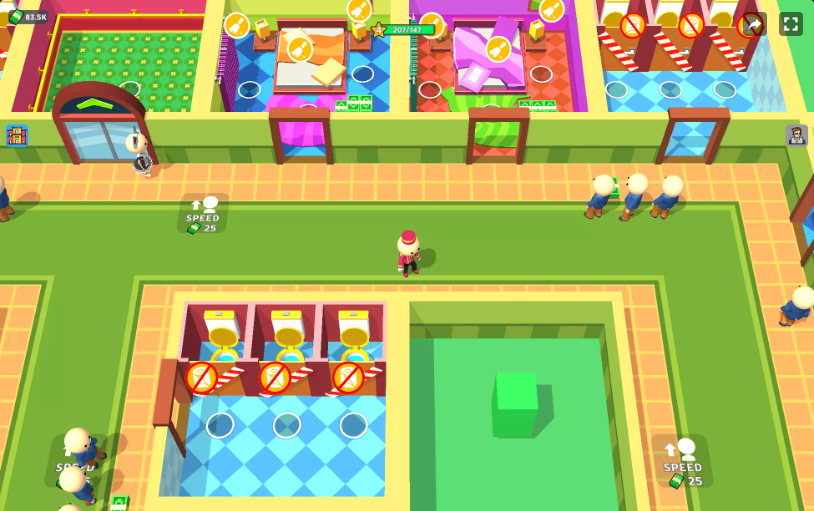 Wähle, welche Zimmer und Einrichtungen eröffnet werden sollen, und biete neue Services an, um die Kundenzufriedenheit zu steigern. 🏆