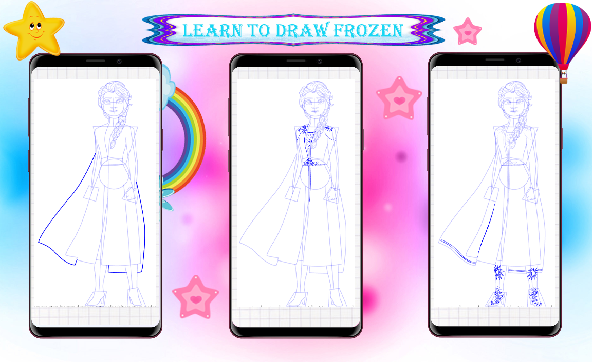 - This app contains dozen of your favorite Princess Frozen Characters drawing pages.