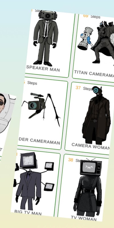 Die Lektionen helfen Ihnen dabei, Skibidi-Toilettenfiguren wie TV MAN, SPEAKERMAN und andere genau und schön zu zeichnen. Wenn Sie den Lektionen Schritt für Schritt folgen, können Sie nicht nur schnell, sondern auch schön zeichnen!