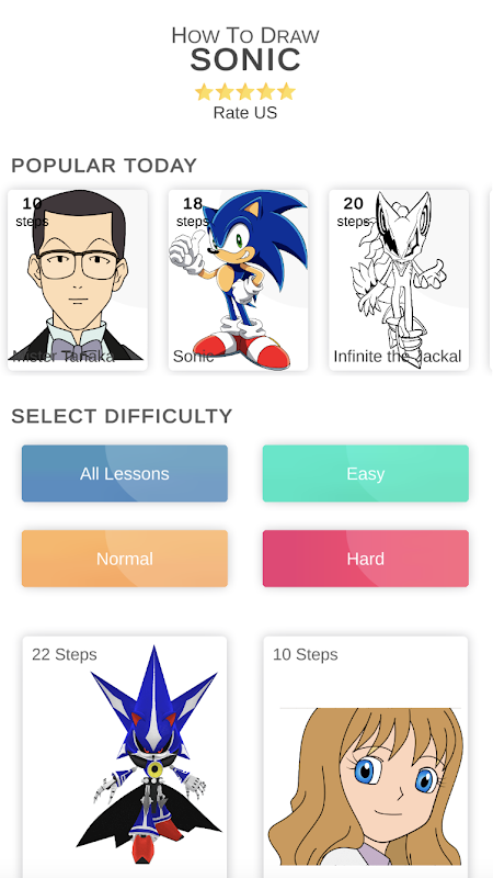 Sie fragen sich immer noch, wie man Sonic the Hedgehog -Charaktere zeichnet? Laden Sie dann einfach unsere Anwendung herunter. Lass uns lernen, zusammenzuziehen.