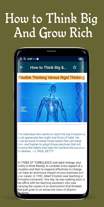 Thinking big is a special quality of successful people in the world. Their thinking strategy must be different from general people. The properly know how to think bigger or how to think critically. So, we bring a big app for our user name Think big and Grow Rich. To read this think big and grow rich book app you can learn how to think fast,