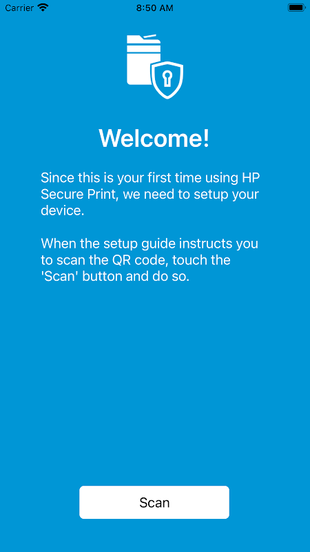 Bei der Installation auf einem Mobilgerät ermöglicht diese Anwendung autorisierten Geschäftskunden, Druckaufträge aus ihrer Secure Print-Warteschlange einem beliebigen freigegebenen Netzwerkdrucker oder Multifunktionsdrucker zuzuweisen, indem einfach der am Gerät aufgebrachte QR-Code gescannt wird. Bevor Sie Ihr Mobilgerät für die Dokumentenfreigabe verwenden können, müssen Sie es zunächst mit der Secure Print-Lösung aktivieren, indem Sie die Anweisungen Ihres IT-Managers oder des Druckadministrators befolgen.