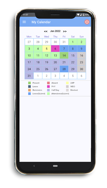 * Mark-in & Mark-out für die tägliche Anwesenheit.