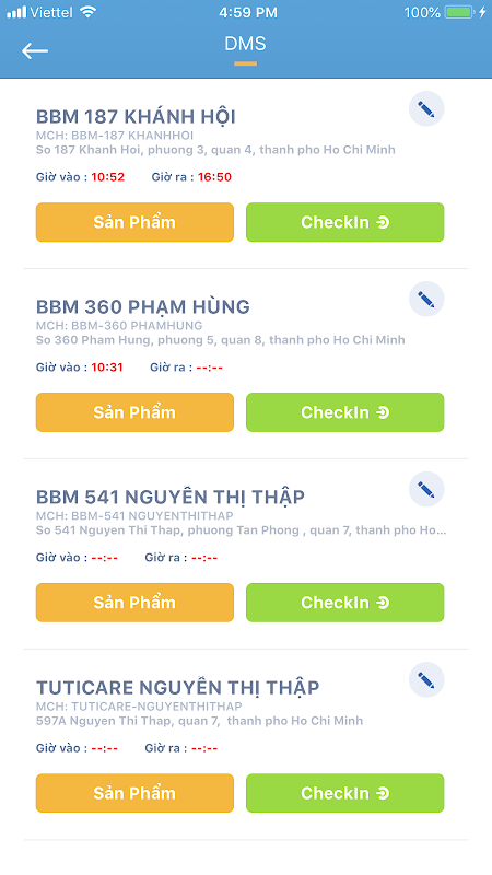 Check-in und überprüfen Sie die Lage des Verkaufs am Speicher oder Ausgang aus.