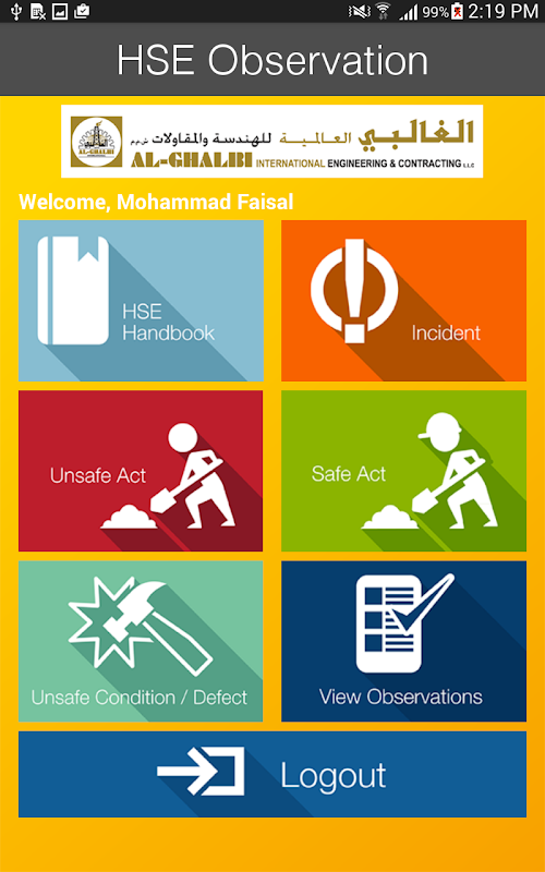 The HSE Observation tool enables users to report an issue using a mobile or tablet, on the spot to the management with the help of captured images and detailing of the situation. The safety measures and concerns differs from site to site; so this is specially taken into consideration in this application. Moreover a detailing of the best practices is also available. The reported observations are delivered to the authorised HSE managers who maintain a web based application in order to take necessary actions to avoid unsafe acts/incidents in future.